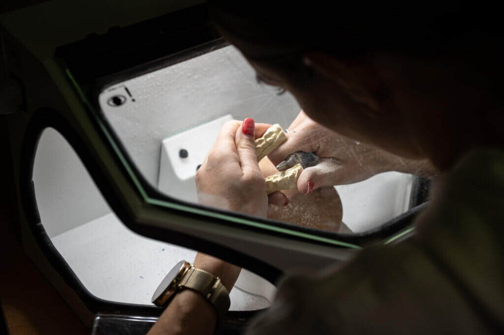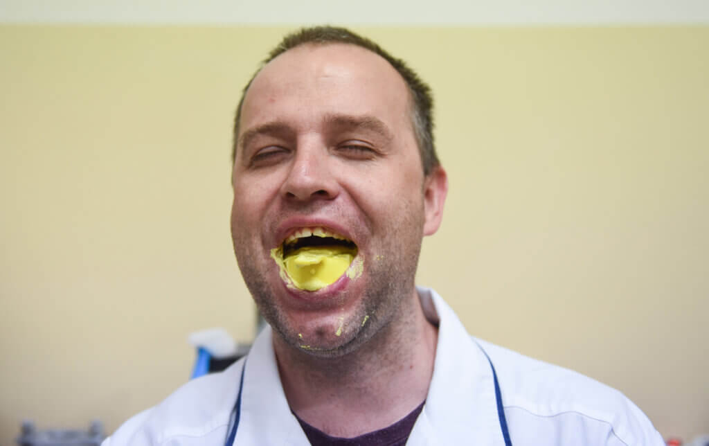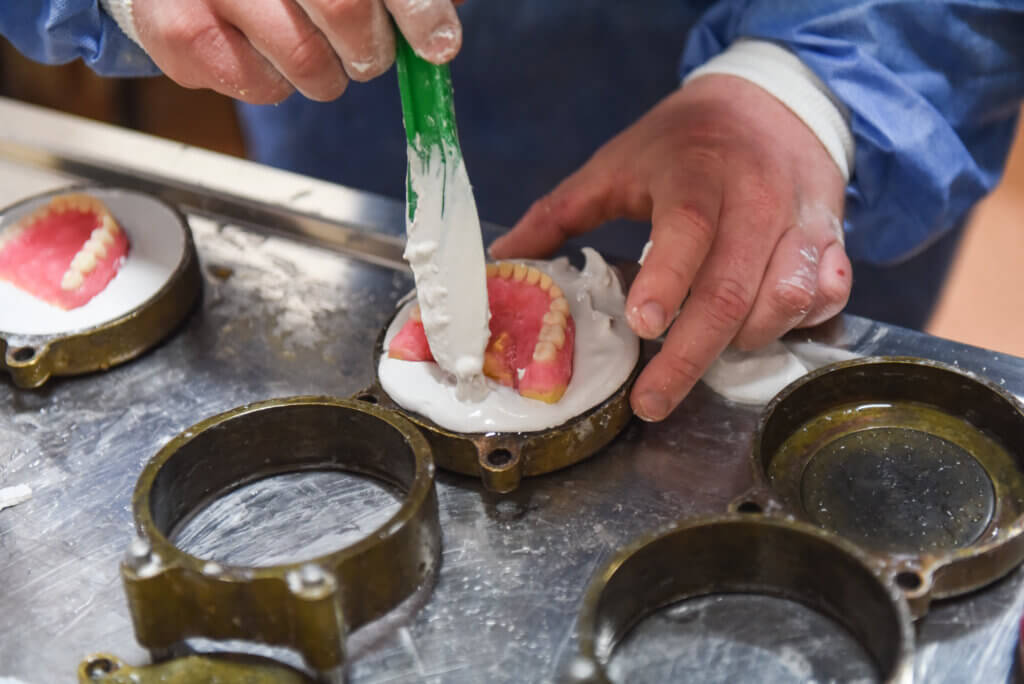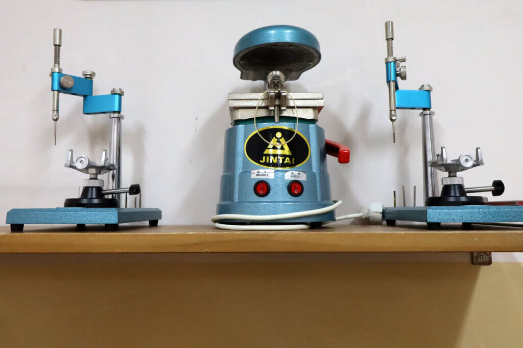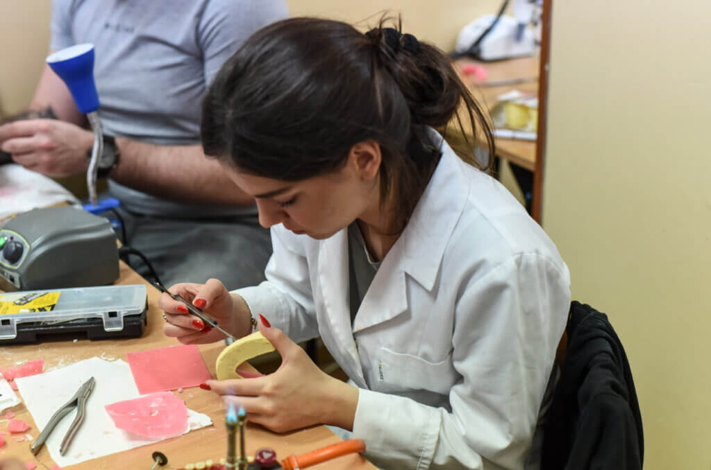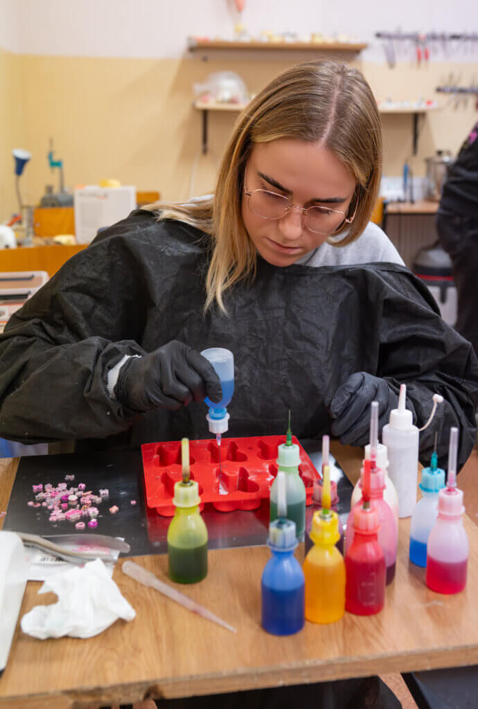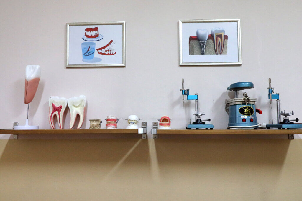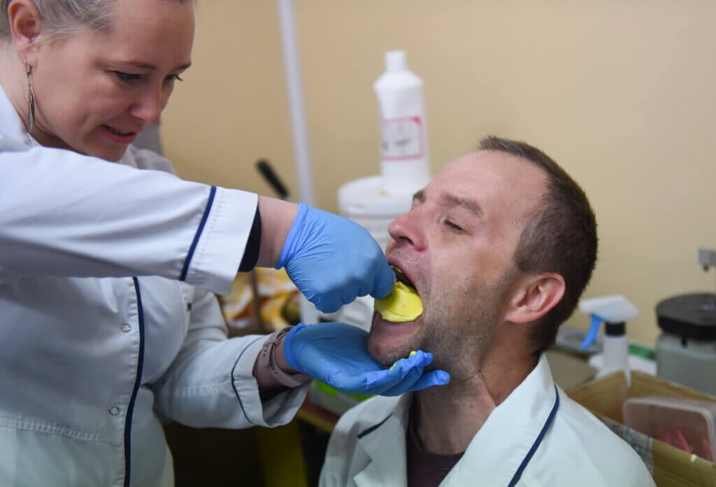 W tak przygotowanych warunkach nasi słuchacze szkolą się w zakresie wykonywania protez, aparatów ortodontycznych oraz innych uzupełnień stomatologicznych. Zdjęcia prezentują praktyczny wymiar nauki, gdzie pod okiem fachowców uczniowie pracują na profesjonalnych materiałach, przygotowując się do pracy w nowoczesnych laboratoriach i gabinetach.