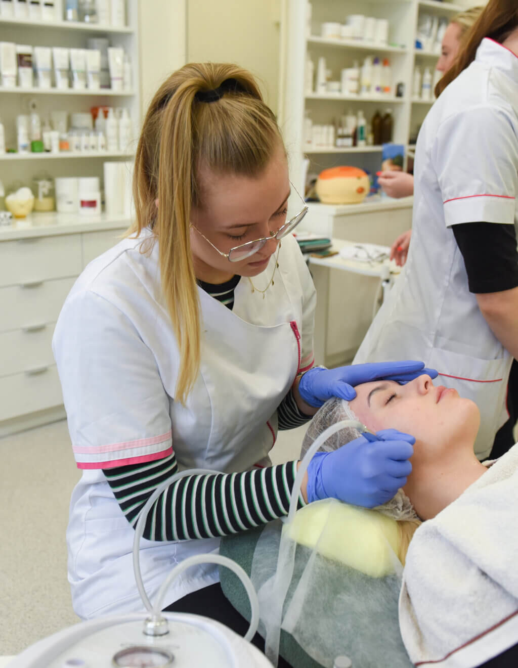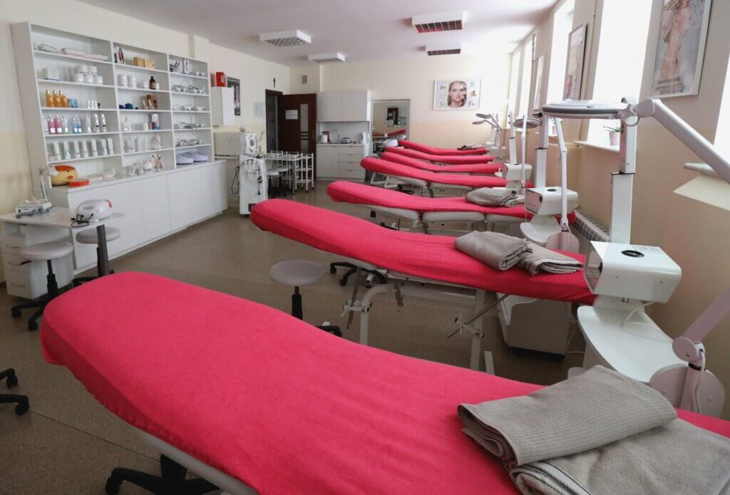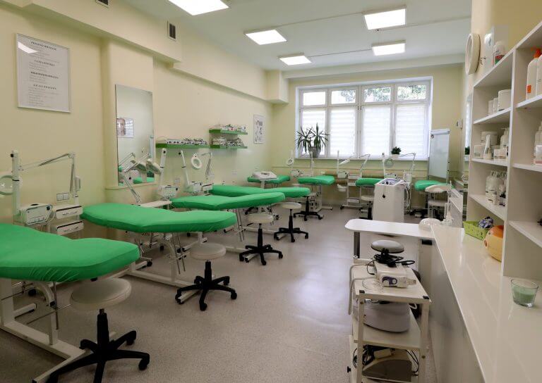 W tej przestrzeni nasi uczniowie szkolą się w wykonywaniu masaży, aplikacji profesjonalnych masek zabiegowych oraz stylizacji oprawy oka. Dzięki pracy na zaawansowanym sprzęcie i profesjonalnych liniach kosmetycznych, absolwenci technikum kończą szkołę z kompletem umiejętności gotowych do wykorzystania w prestiżowych salonach kosmetycznych i ośrodkach SPA.